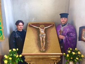 Майстер Юрій Семенюк подарував унікальний образ розп’яття Спасителя храму Великомученика і цілителя Пантелеймона в цьому селищі Ковельського районного деканату з нагоди свята Торжества Православ’я.