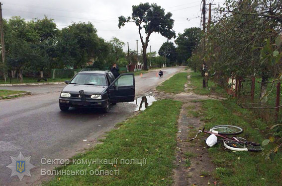 Внаслідок ДТП жінка та її 5-річний син, який знаходився на багажнику велосипеда, отримали тілесні ушкодження. Дитину госпіталізували у відділення реанімації Волинської обласної дитячої лікарні.