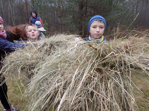 Зазвичай на екскурсії їдуть автомобільним транспортом, а тут довелося на підводі, адже місця для підгодівлі диких тварин розміщені у важкодоступних місцях. Та й їхали діти до братів своїх менших не з порожніми руками. Власними силами вони виготовили солонець і, звичайно, захотіли його встановити самі.
