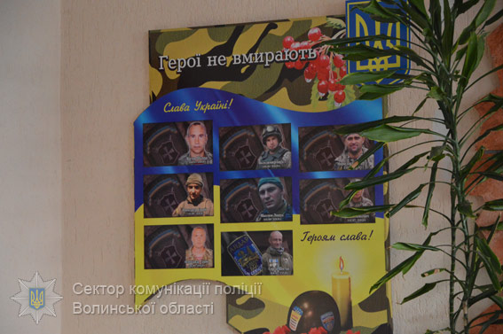 У приміщенні обласної ветеранської організації Асоціації ветеранів МВС України встановили тематичний стенд «Герої не вмирають» з інформацією про загиблих правоохоронців. Співробітники поліції також передали родинам загиблих правоохоронців матеріальну допомогу та подарункові картки.