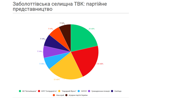 Заболоттівська селищна ТВК сформована із 14 представників від 8 політичних партій. Головою комісії було призначено представника від ВО «Батьківщина», заступником голови – «Блок Петра Порошенка «Солідарність», секретаря – «Громадянська позиція». З-поміж інших членів комісії – 3 представники від партії «Народний фронт», по 2 представники від політичних сил «Блок Петра Порошенка «Солідарість» та ВО «Батьківщина», по 1 представнику від ВО «Свобода», «Українське об’єднання патріотів – УКРОП», Аграрої партії України та партії «Наш край».