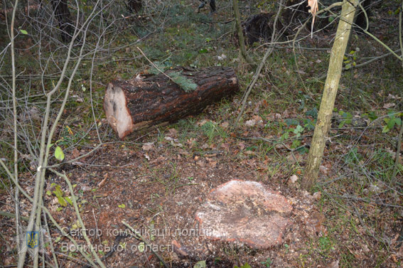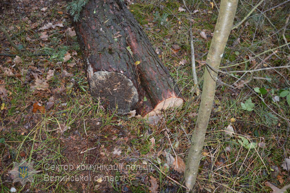 В одному із відділів Ратнівського лісогосподарського агропромислового підприємства працівники лісу виявили незаконну порубку сосни. Майстер лісу одразу ж викликав поліцейських.