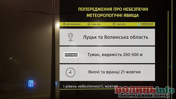 Згідно синоптичного прогнозу вранці та вдень, по області та в Луцьку, очікується туман з видимістю 200-500 м.