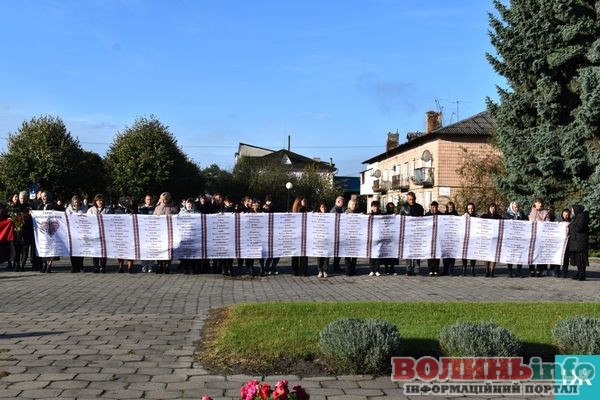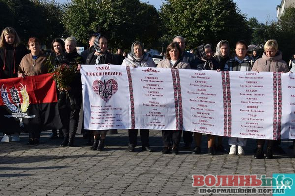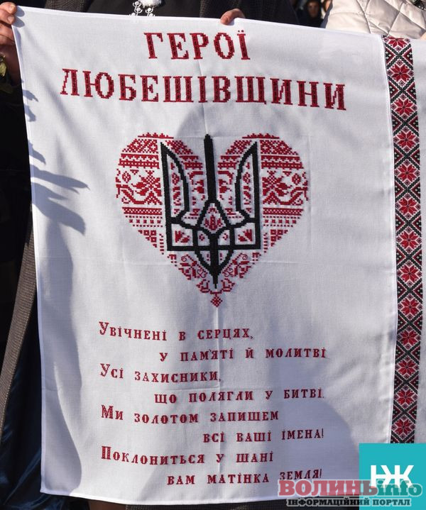 1 жовтня у Любешові презентували 16-метрове полотно, вишите руками рідних загиблих воїнів. На рушнику вишито 118 імен захисників, які віддали своє життя за Україну з 2014 року.