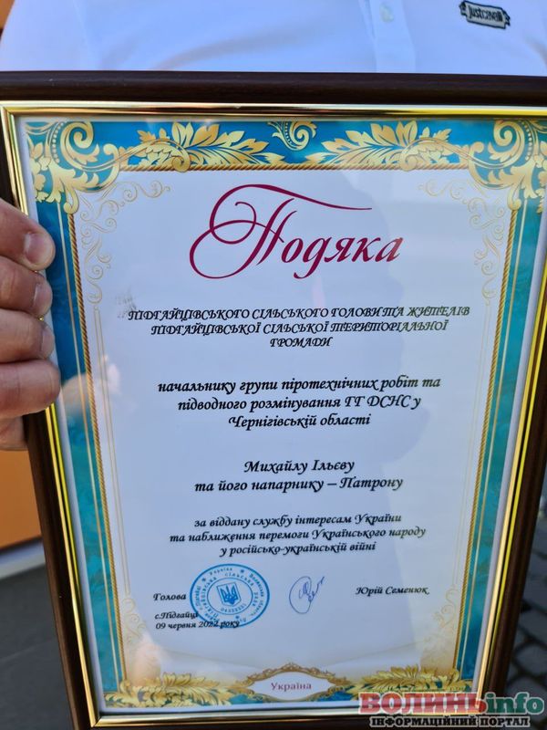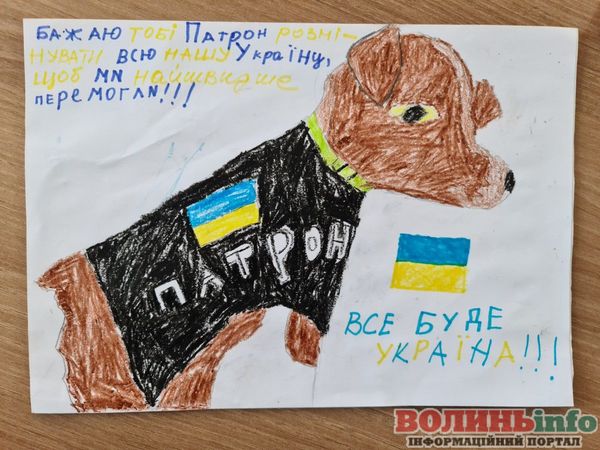 Ми дізналися адресу, на яку можна відправити гостинці для легендарного пса та його господарів. У посилку поклали іграшкового «Патрона», подяку та сувеніри від Підгайцівської громади, волинські солодощі, дитячі малюнки та корм для чотирилапого Рятівника.