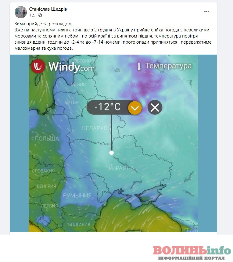 “Зима прийде за розкладом”, – каже народний синоптик Станіслав Щедрін.