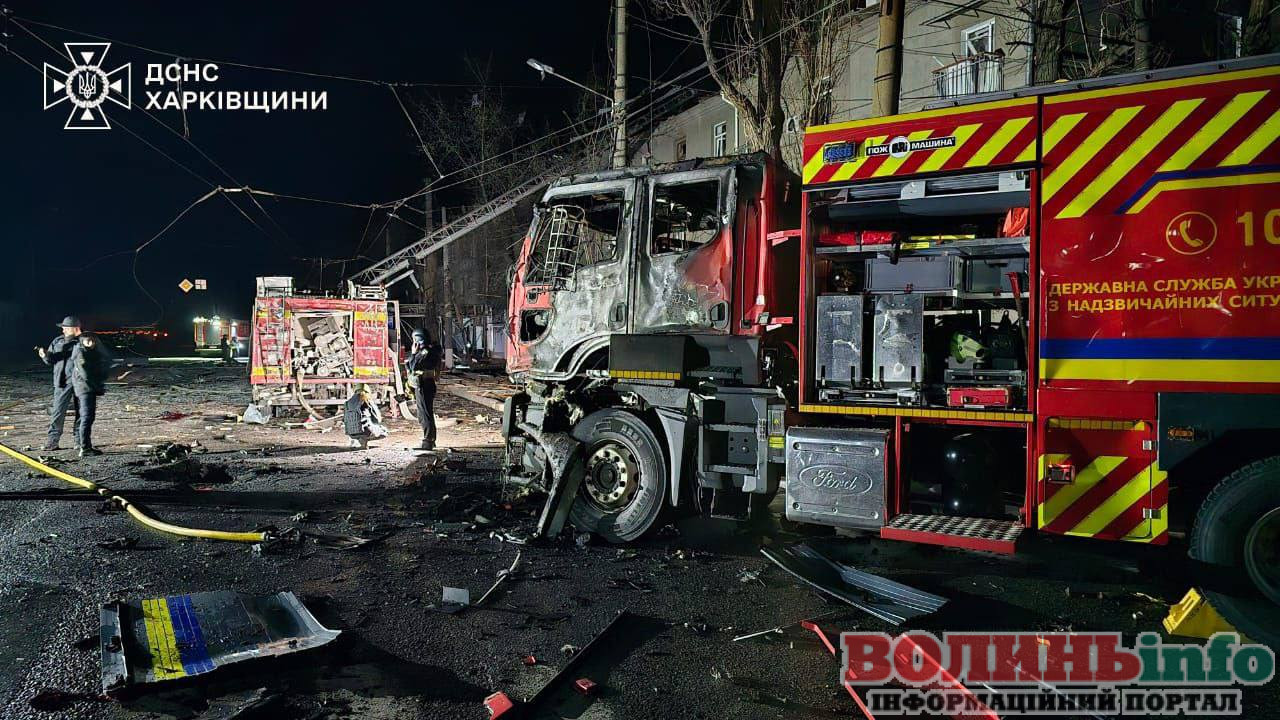 Були пошкоджені щонайменше три авто ДСНС. Триває ліквідація наслідків атаки.
