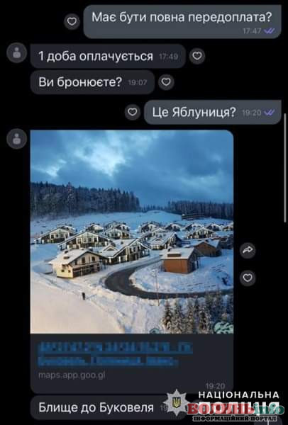Жінка розміщувала онлайн-оголошення про оренду неіснуючих котеджів для відпочинку в Карпатах. Для бронювання помешкання потерпілі перераховували їй завдаток, та згодом «орендодавиця» припиняла виходити на зв’язок.