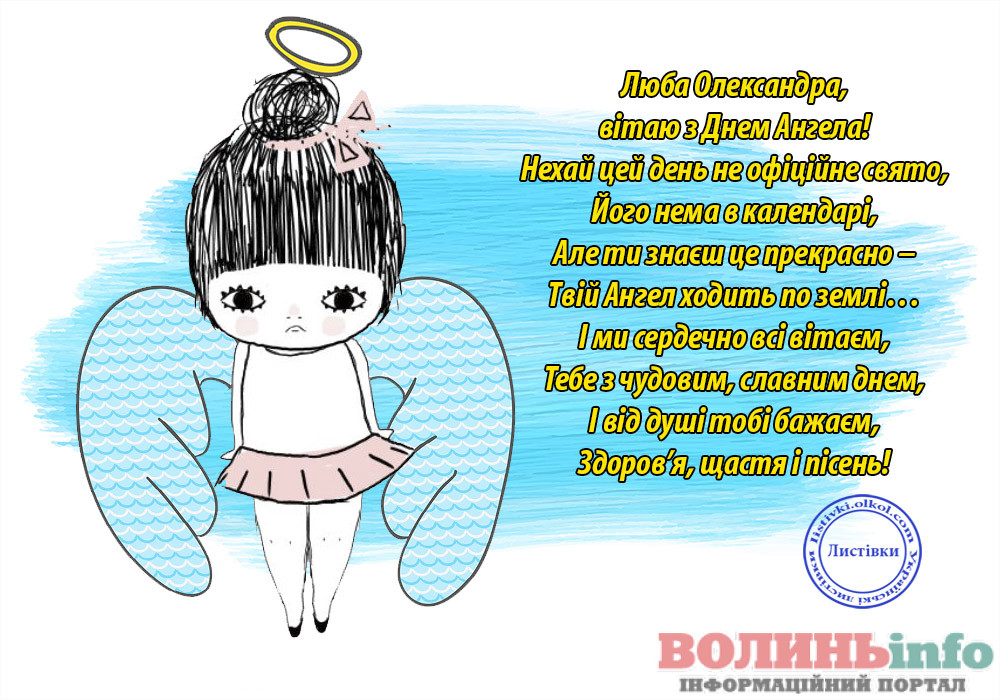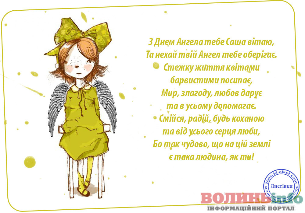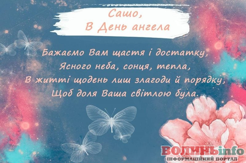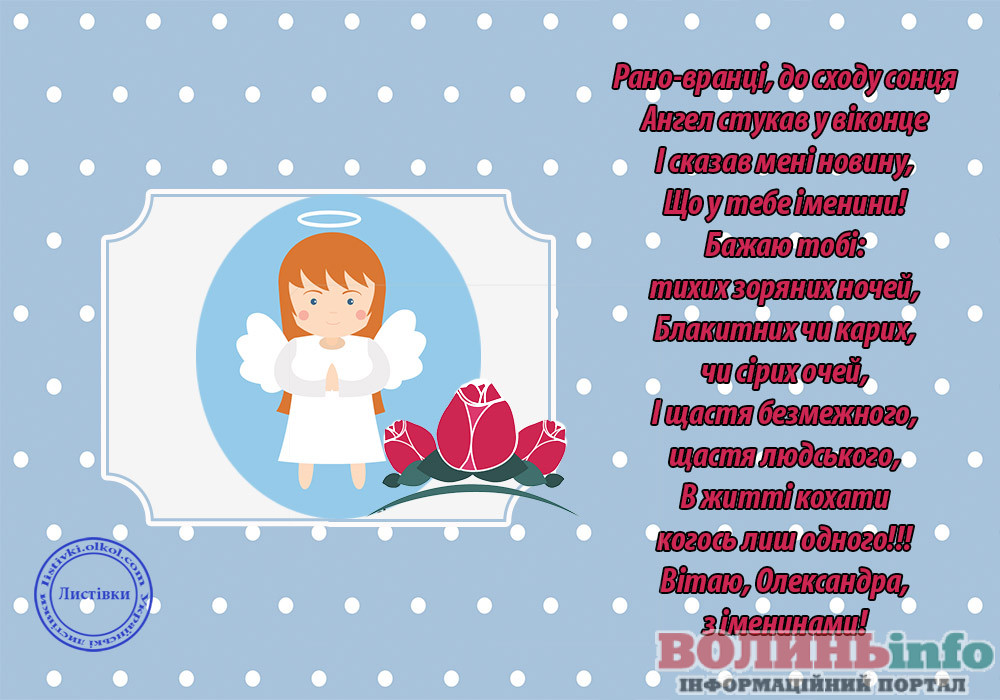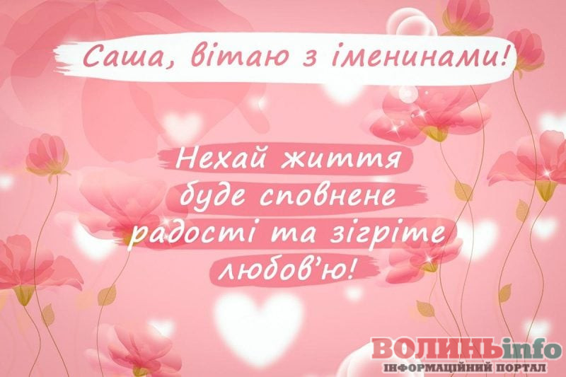 Олександро, щиро вітаю тебе з іменинами! Бажаю тобі міцного здоров’я, безмежного щастя, нескінченного кохання, успіхів у всіх твоїх починаннях!
