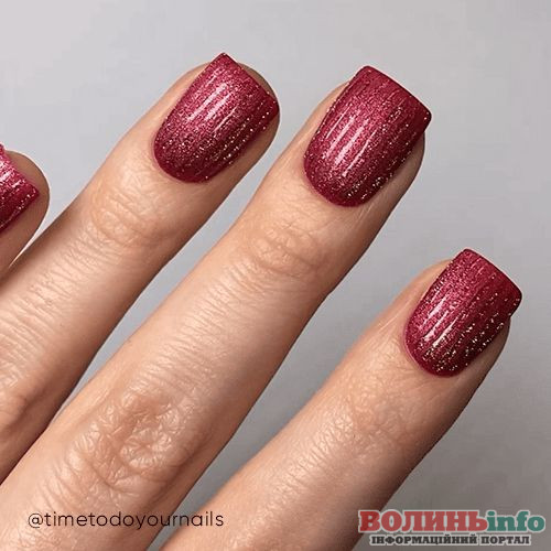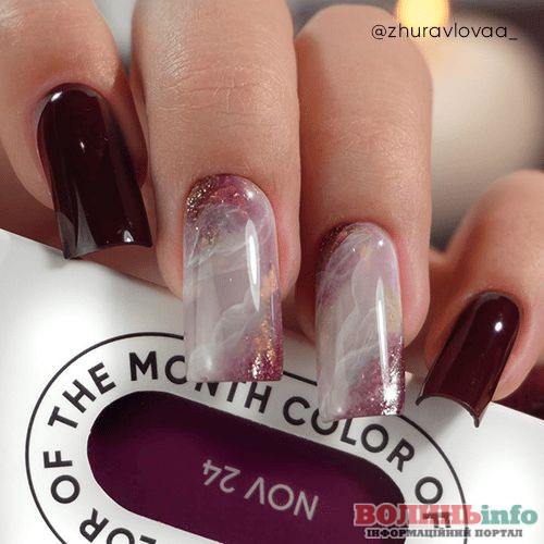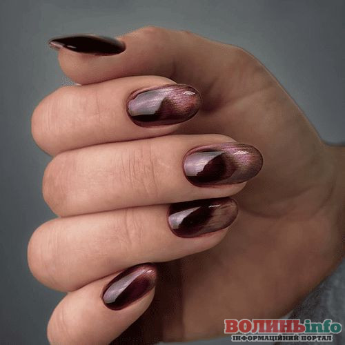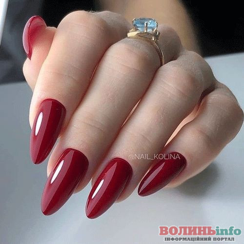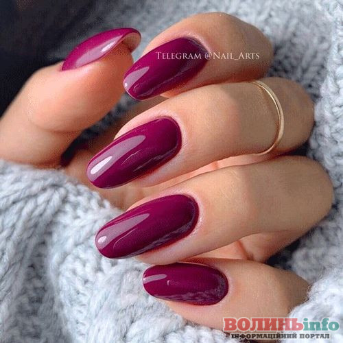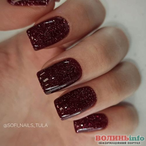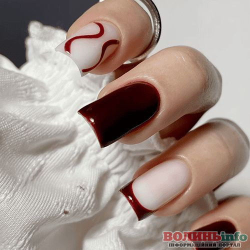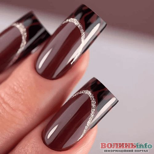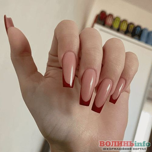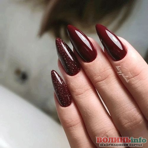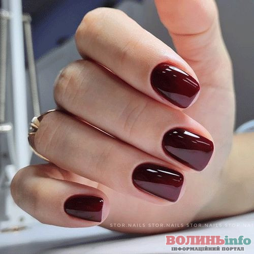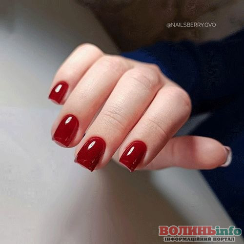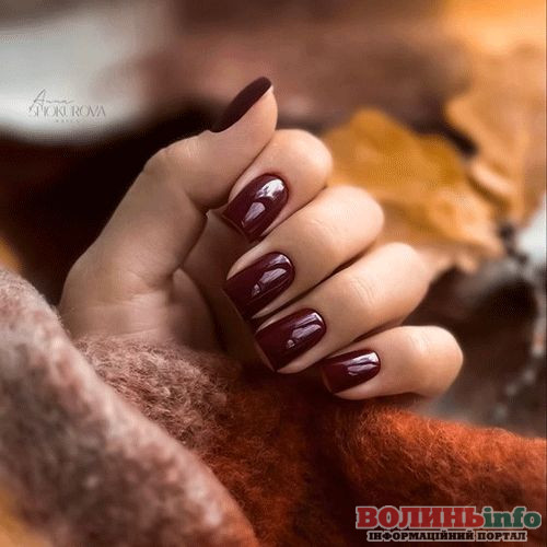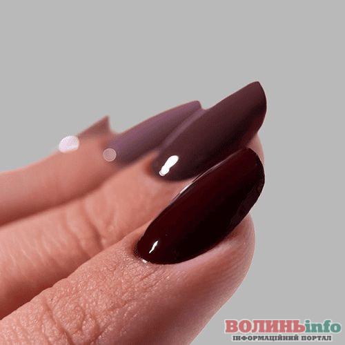Глибокі вишневі та винні відтінки — безпрограшні восени. Носіть соло, робіть френч з вишневою «усмішкою» або додавайте золоту/срібну деталь — колір заграє по-новому.