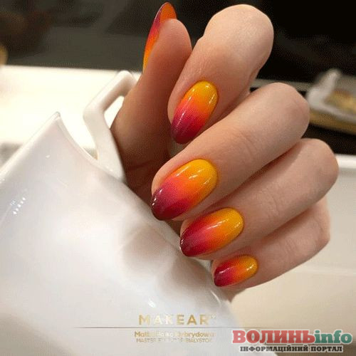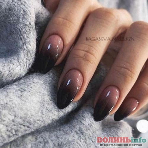 Мигдаль зручний і витончений у будь-якій довжині. Осінній градієнт будуйте від світлого до темного: карамель → шоколад, оливка → хвойний, бурштин → марсала. Такий перехід виглядає м’яко й дорого.
