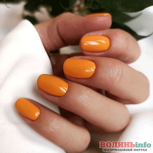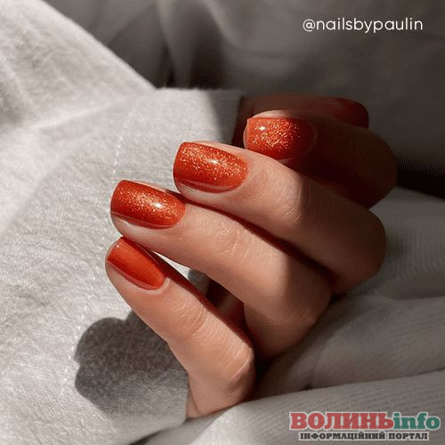 Теплі гами гарбуза, теракоти, граната й рубіна — класика сезону. Комбінуйте близькі відтінки на різних нігтях або робіть акцент на одному-двох, додаючи тонкі малюнки листя чи мікроблиск.