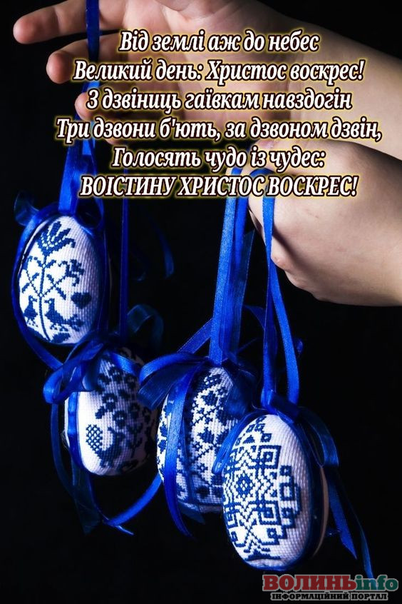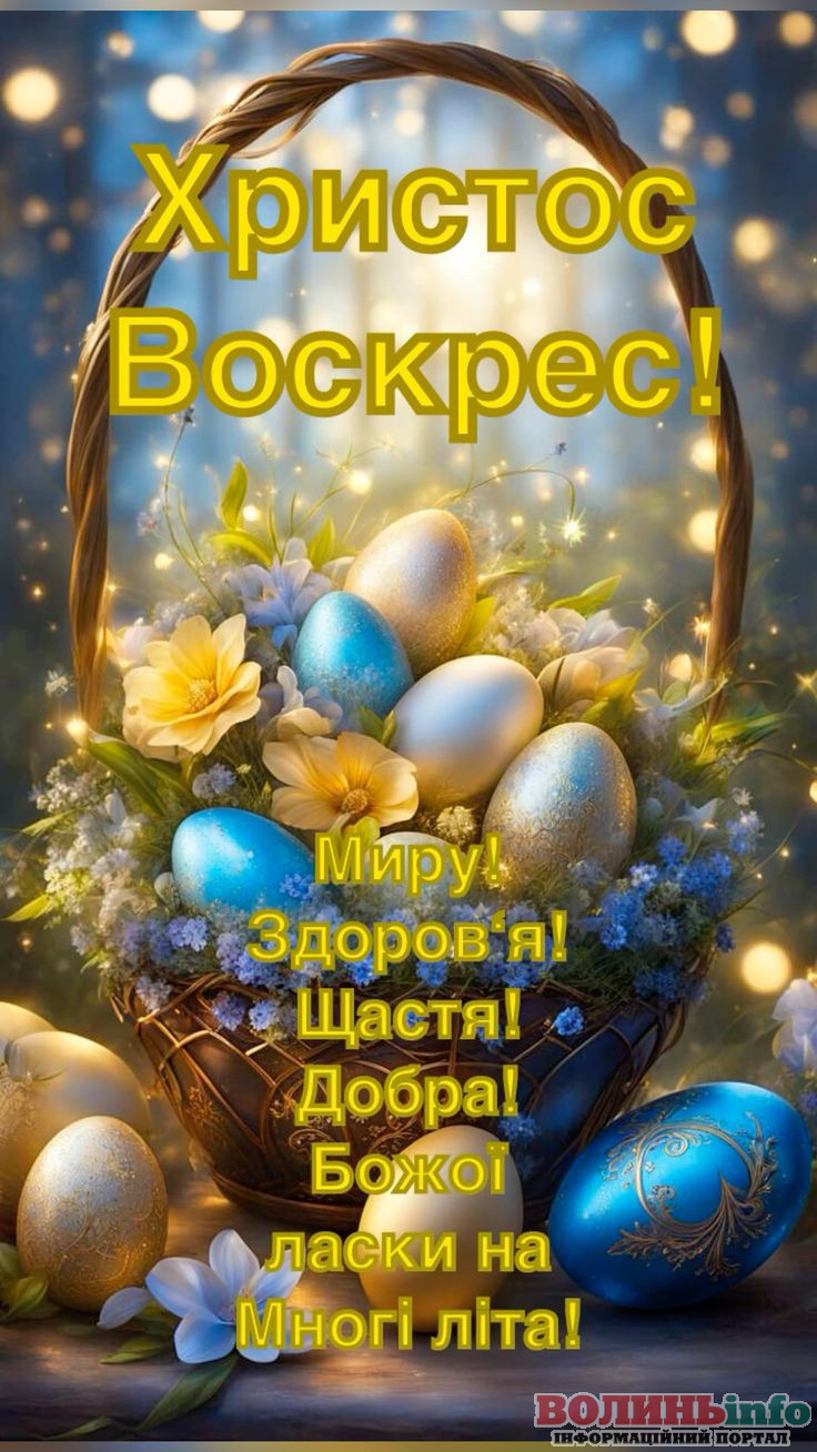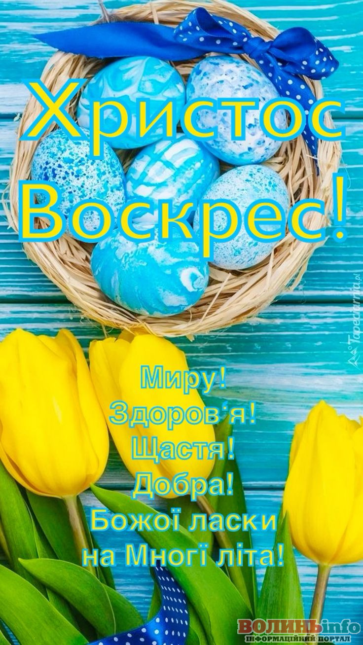 Христос воскрес! Нехай Великодень буде днем, коли в серці з’явиться радість, а душа наповниться світлом і любов’ю. Бажаю тобі миру, щастя і благополуччя у кожному куточку твого життя.