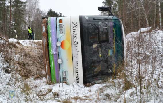 На місце події виїхала слідчо-оперативна група. Поліцейські з’ясували, що 49-річний водій автобуса марки «Неоплан», перебував поза маршрутом і направлявся разом зі своїм помічником до селища Любешів для проведення ремонту транспортного засобу. Неподалік села Пнівне Камінь-Каширськогорайону, внаслідок заносу, водій не впорався із керуванням, з’їхав у кювет. Автобус перекинувся.