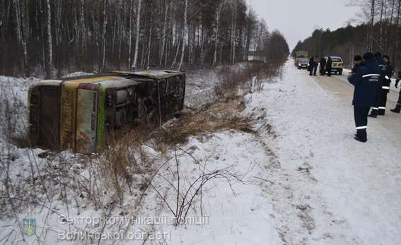 Сьогодні, 10 січня, близько 10 години на автодорозі, сполученням «Камінь-Каширський–Седлище», водій автобуса марки «Неоплан» не впорався із керуванням і з”їхав у кювет, де транспортний засіб перекинувся.