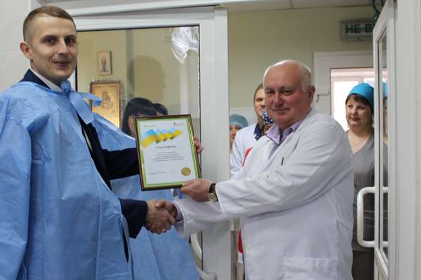 Сертифікат на обладнання на суму понад 1 млн грн, передане Волноваській районній лікарні № 1, вручено головному лікарю Володимиру Коваленку. Від імені персоналу медзакладу він подякував усім небайдужим клієнтам і співробітникам ПриватБанку, які беруть участь у благодійності.