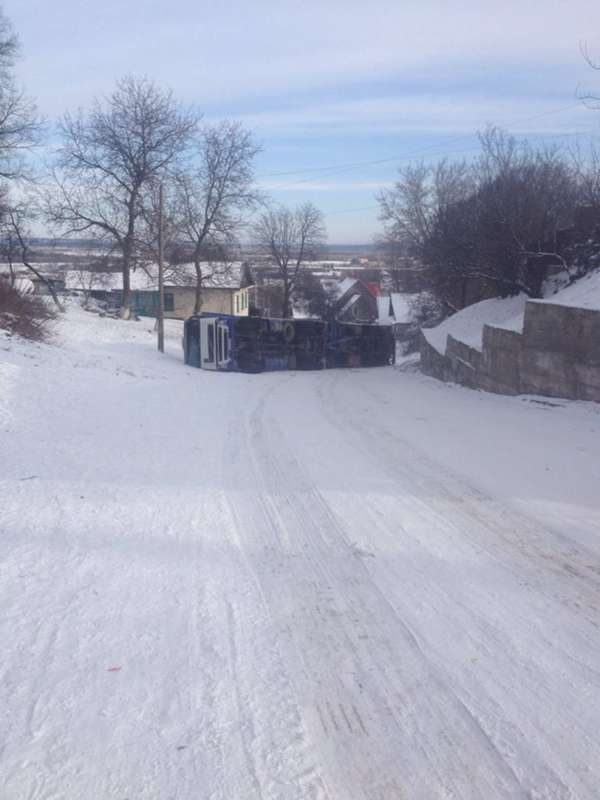 У середу, 24 січня, в Острозі по вулиці Красногірській трапилася дорожньо-транспортна пригода – перекинулася вантажівка, – повідомляє “Район. Острог”.