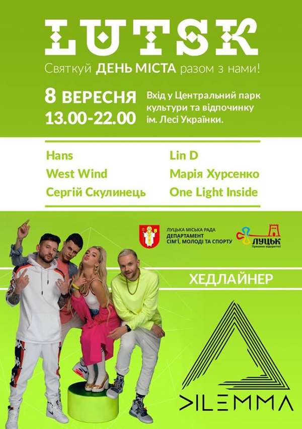 Оприлюднили програму святкування Дня Луцька, яке відбудеться 8 вересня з 12.00 до 22.00 у Центральному парку культури і відпочинку імені Лесі Українки.