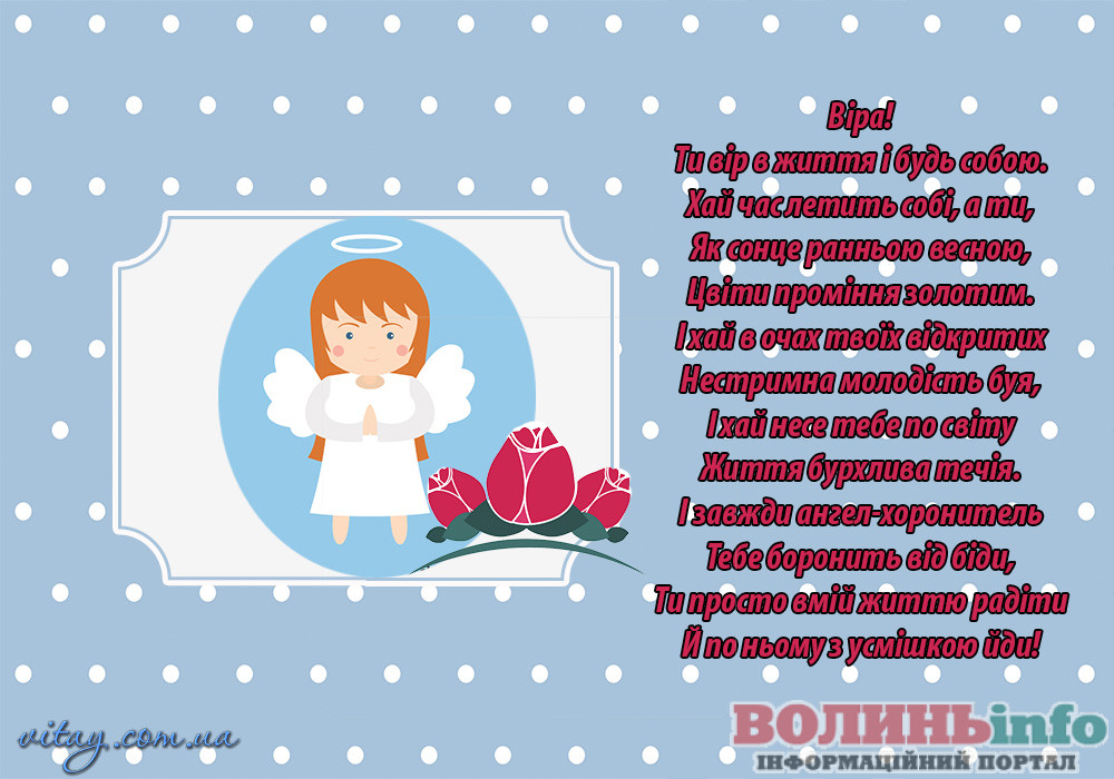 Віра, з Днем ангела тебе. Бажаю простого людського щастя, добробуту в твоєму домі та домівках твоїх близьких, і якнайбільше приводів для посмішки, адже вона так тобі личить.