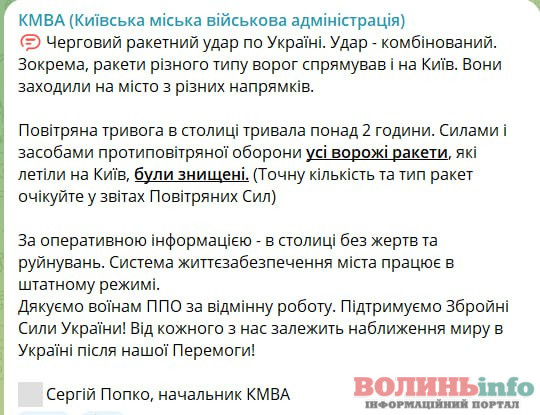 Ранок на Волині розпочався з “сигналу тривоги”: Росія завдала комбінованого ракетного удару по території всієї України