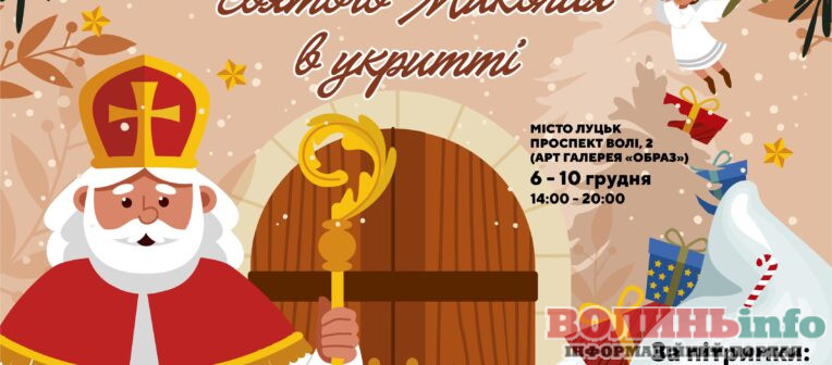 У Луцьку функціонуватиме резиденція Святого Миколая в укритті. З 6 по 10 грудня 2023 р. бажаючі зможуть потрапити у казкову резиденцію, яка розміщується в центрі міста та під землею. Як до неї потрапити? Через Арт-галерею “Образ” (м.Луцьк пр.Волі 2). З самих перших кроків Ви потрапляєте у атмосферу магії та зимової казки… Ви зможете поспілкуватися зі Святим … Читати далі Резиденція святого Миколая в укритті у Луцьку чекає відвідувачів