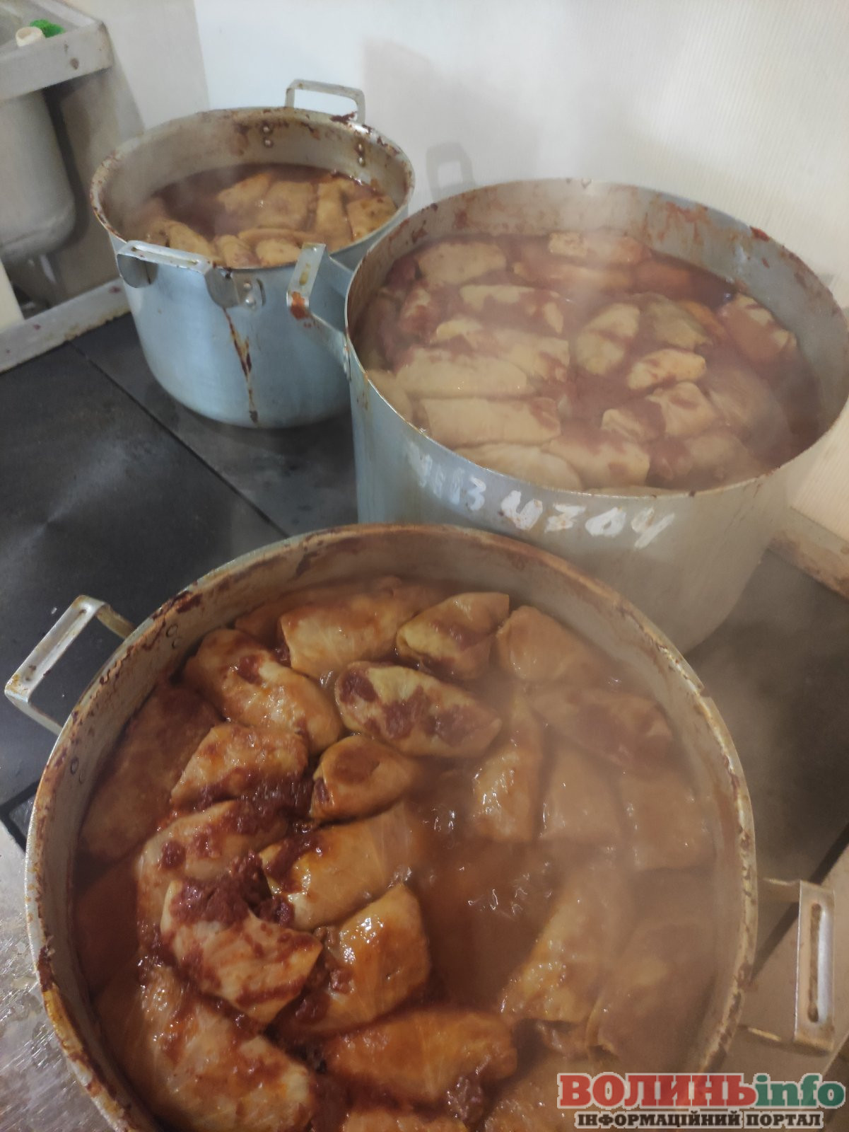 Сили розподілили так: одні куховарили гуртом на кухні шкільної їдальні, інші місили тісто і випікали пиріжки з різноманітними начинками у дома та приносили у пункт збору.