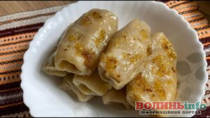 Капустяне листя відварити до м’якості у воді (воду не зливати), зрізати грубі прожилки, начинити листя картопляним пюре і сформувати голубці.