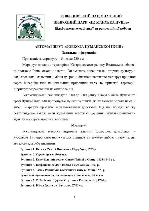 Розробили туристичний автомаршрут «Довкола Цуманської пущі»