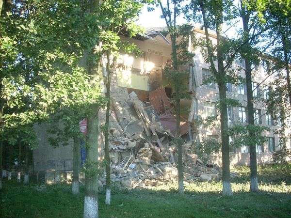 У 4-х поверховій будівлі навчального корпусу зруйновано частину (180 м2) зовнішньої фасадної самонесучої стіни з першого по четвертий поверх. Площа руйнування становить приблизно 8% від загальної площі, існує загроза подальшого руйнування.