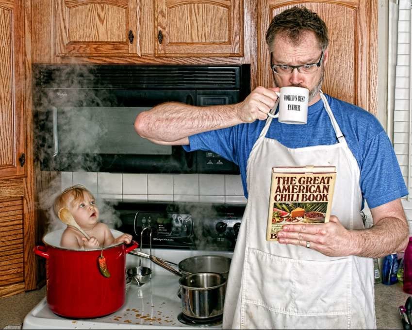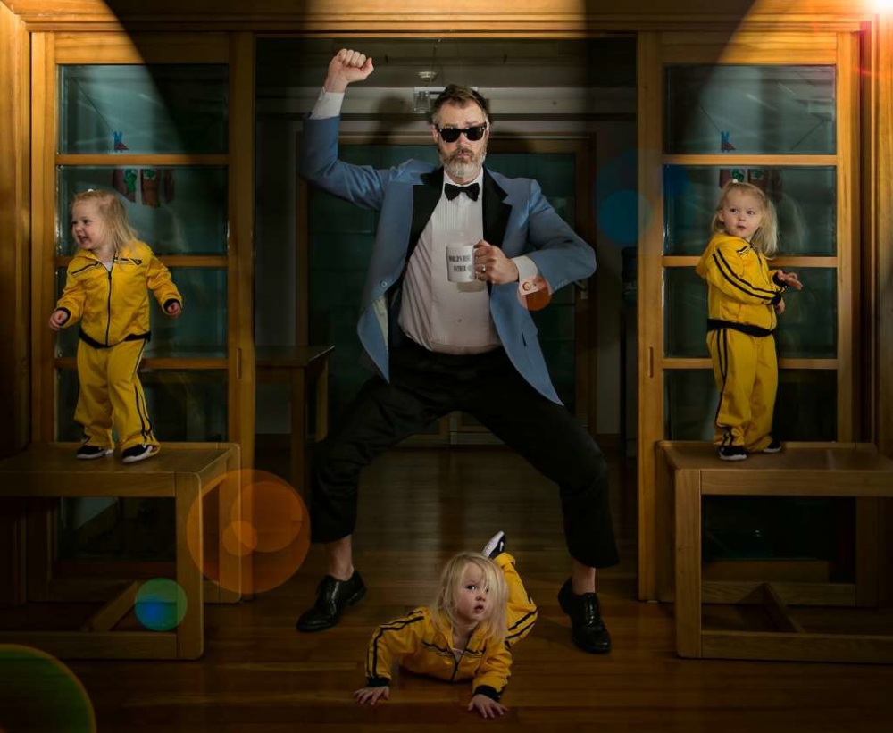 Назва фотопроекту походить від напису на гуртку. Вона присутня у кожному кадрі: “Кращий тато в світі”.