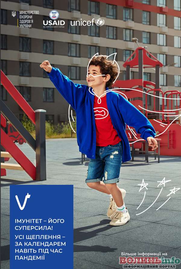 Імунізація запобігає 2–3 млн смертей у світі щороку. Ще 1,5 млн людей можна врятувати, якщо охоплення щепленнями збільшиться. Для того щоб привернути увагу українців до планової вакцинації дітей та дорослих навіть під час пандемії COVID-19, Міністерство охорони здоров’я (МОЗ) України за підтримки Агентства США з міжнародного розвитку (USAID) та Дитячий фонд ООН (ЮНІСЕФ) розпочинають інформаційну кампанію «Щеплення суперсила від хвороб».