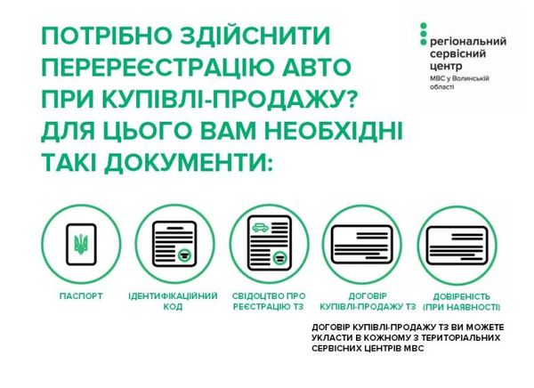 Відповідно до чинного законодавства (постанови Кабінету міністрів України №1388 від 07.09.1998), при купівлі-продажу авто необхідно здійснити його перереєстрацію, яка проводиться на підставі документів, що підтверджують правомірність придбання транспортних засобів.