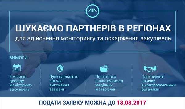 Інститут аналітики та адвокації шукає партнерів в регіонах для здійснення моніторингу та оскарження закупівель. Проект здійснюватиметься до квітня 2018 року за підтримки МФ «Відродження».