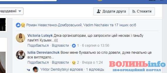 «Було дико щемне відчуття, наче хтось набухавшись на поминках Кузьми вирішив ударить по цимбалам… і музика та що тра, а боляче до сліз… від цієї клоунади», – написав один від бандерштатівців у «Фейсбук».