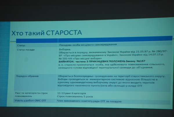 Директор ВВП ЦРМС Анатолій Пархом’юк розповів, що староста – це нова посада в ієрархії місцевого самоврядування.
