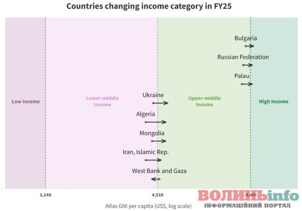 - Цього року Україна, Алжир, Іран та Монголія перейшли з категорії країн з доходом нижче середнього до категорії країн з доходом вище середнього.
