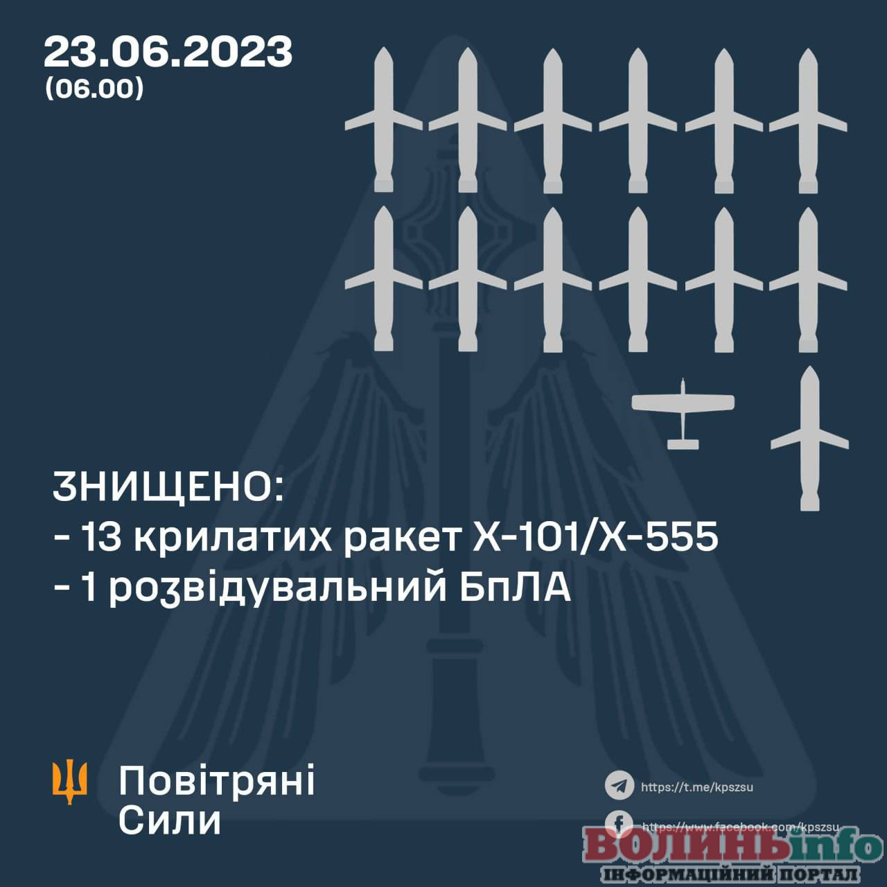 Сили ППО збили за ніч 13 крилатих ракет та безпілотник: наслідки нічної атаки 23 червня