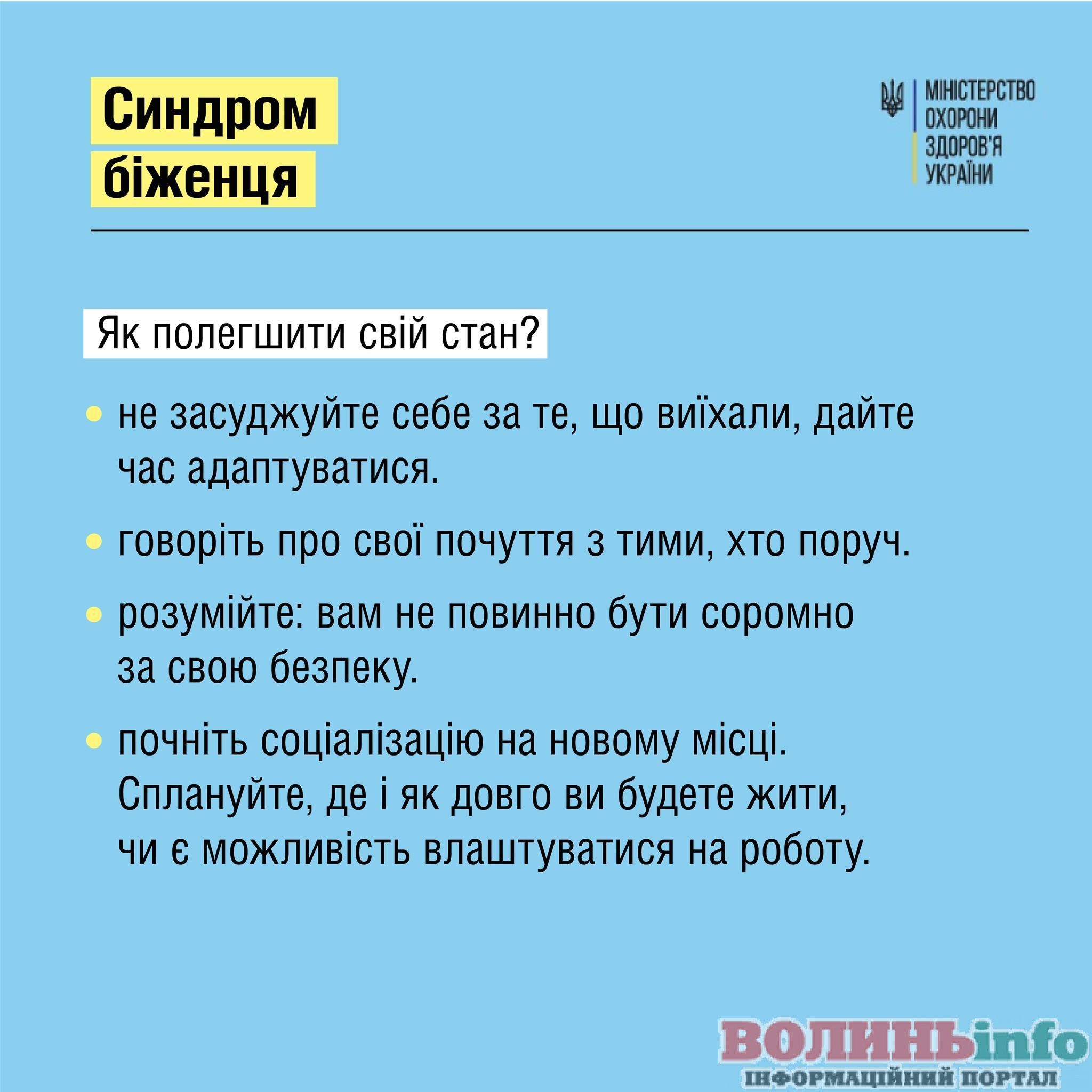 #МОЗ розповідає про симптоми «синдрому біженця» та способи його подолання.