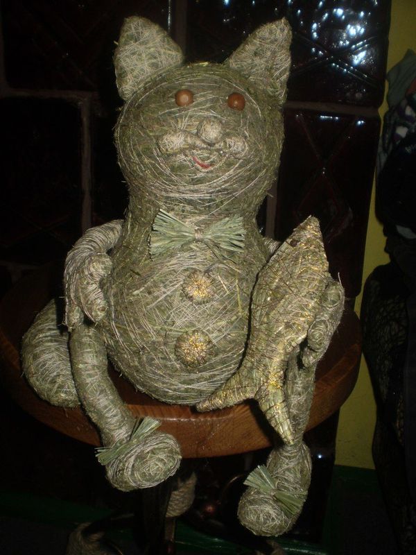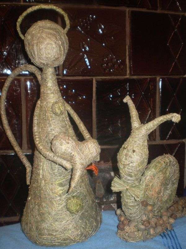 На відміну від соломи, сіно не плететься, а ліпиться, як з пластиліну. Пучок за пучком кріпиться один до одного, доки не реалізується задумане.