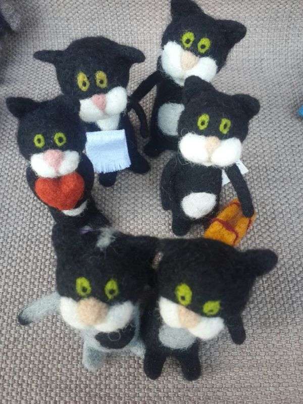Проте найбільше майстриня любить валяти котів. Вони у неї найрізноманітніші: різних кольорів і розмірів, сумні і веселі, з якимись атрибутами і без них.