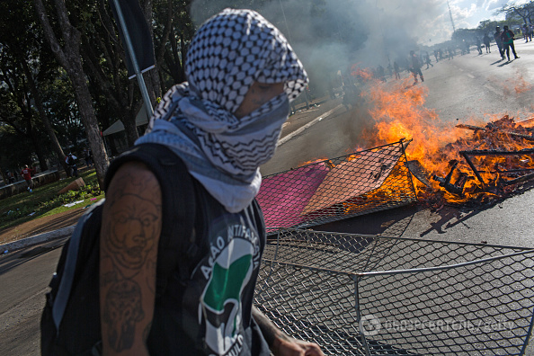 У Бразилії протестують проти президента Мішеля Темера влаштували зіткнення з поліцією і підпалили будівлю міністерства сільського господарства в столиці Бразиліа.