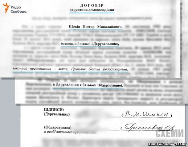 Про те, що Віктор Шокін і Оксана Гриневич є батьками цієї дитини, зазначено в договорі дарування маєтку в Забір’ї, наявному в розпорядженні редакції програми.