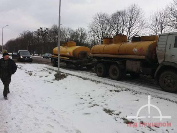 Під час руху автомобіля , який перевозить вибухонебезпечні вантажі, з одніє осі навкруги сипало іскрами. Лише коли водій помітив, що його рух знімають – одразу зупинився.
