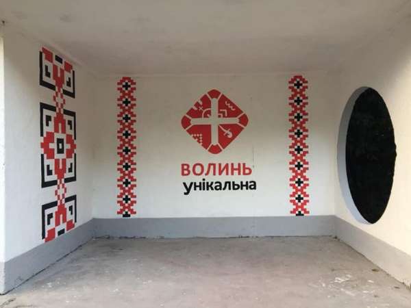Ця зупинка є особливою, вона не тільки рекламує туристичний логотип Волині, а навіть і орнаменти волинської вишивки.