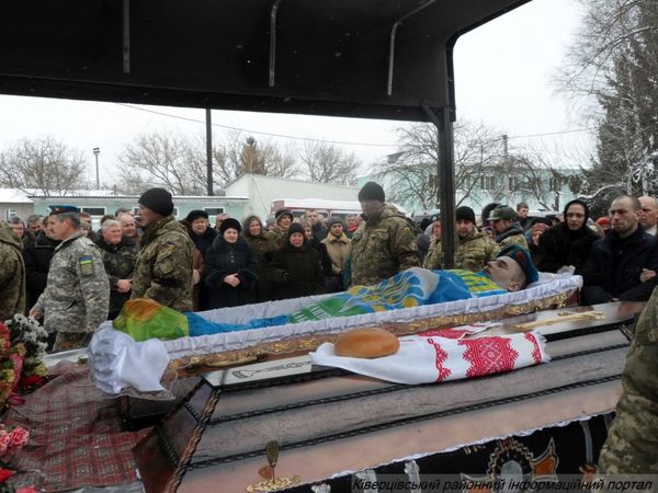 Пом’янувши Героя хвилиною мовчання, спільною молитвою та словами шани, десантника похоронна процесія провела до кладовища. Військового з почестями, під залпи автоматів, у супроводі Державного Гімну України, що виконав військовий оркестр, поховали. В знак шани всі знову стали на коліна…