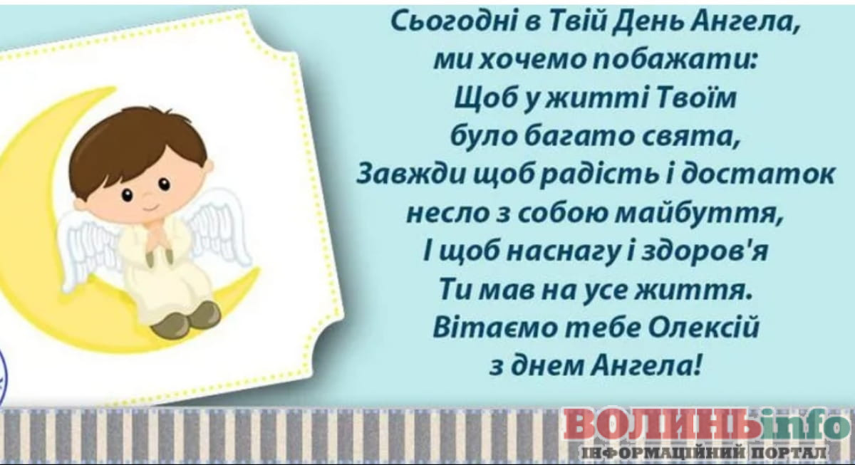Дорогий Олексій, вітаю тебе. Бажаю бути добрим, світлим і відкритим і відразу – твердим, сміливим і впевненим чоловіком. Олексій, нехай завжди буде перспектива і можливість для успіху, удача і підтримка дорогих людей для перемоги! Бажаю тобі міцного здоров’я, сильного характеру і мужності серця. Бажаю, щоб все в житті тебе влаштовувало, щоб кожен день був цікавий і гарний.