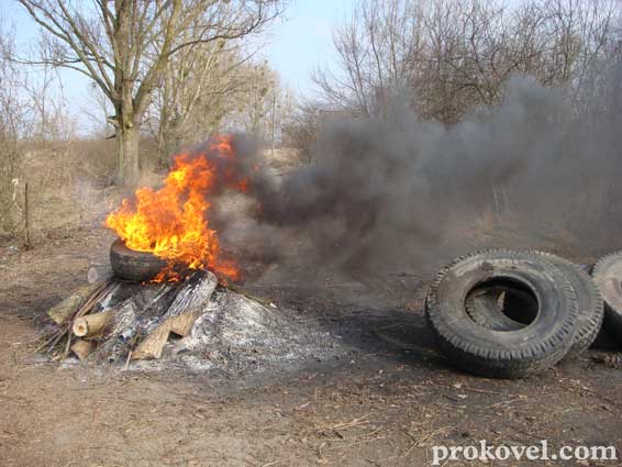 Ковельчани заблокували єдину дорогу до місцевого ветсанзаводу, якою курсували машини, що везли на утилізацію відходи тваринного походження, привезли сюди шини і їх підпалили, а також розробили графік чергувань і перебувають тут цілодобово.
