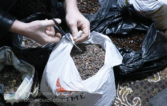 «Під час проведення оперативних заходів співробітники кримінальної поліції Луцького відділу поліції виявили у квартирі 23-річного лучанина 100 кг. бурштину. Власник помешкання пояснив, що придбав бурштин у невідомих йому людей у сусідній Рівненській області. Слідчі внесли відомості до Єдиного реєстру досудових розслідувань за ст. 198 (Придбання, отримання, зберігання чи збут майна, одержаного злочинним шляхом) Кримінального кодексу України. Санкція статті передбачає, зокрема, до трьох років позбавлення волі», — зазначив керівник Головного управління Національної поліції у Волинській області, генерал поліції третього рангу Петро Шпига.