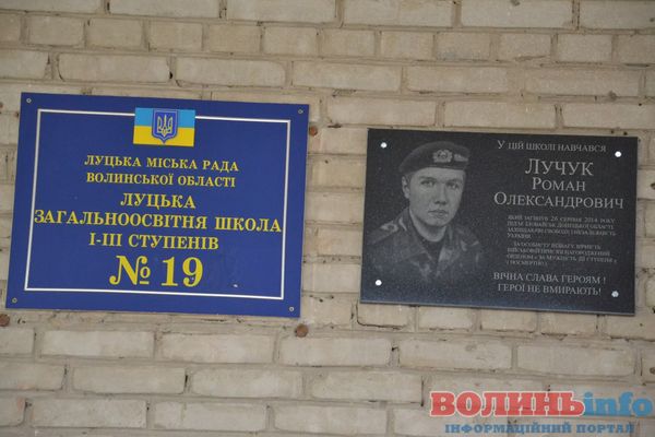 Школа № 19 міста Луцька вшанувала свого героя-випускника меморіальною дошкою. 20 листопада, у навчальному закладі відкрили пам’ятний знак на честь загиблого Романа Лучука.