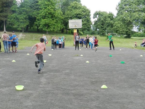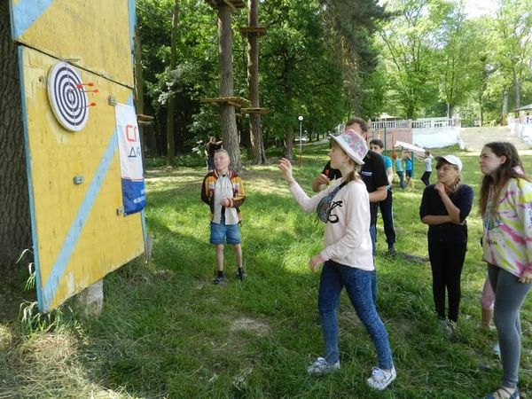 У дружній атмосфері командного духу понад 160 вихованців табору з 6 загонів мали можливість взяти участь у спортивних естафетах, змаганнях з дартсу, у конкурсах з набивання та ведення м’яча, вправах з гімнастичним обручем.